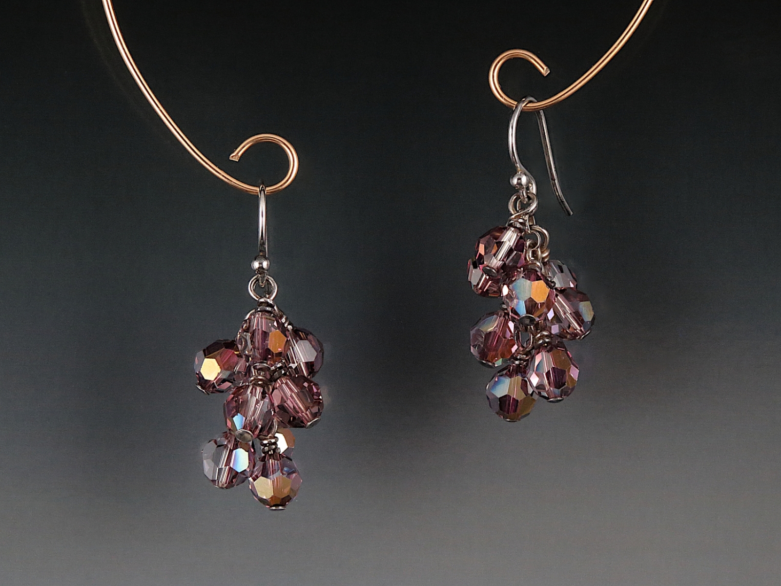 Swarovski Crystal Cluster Earrings - Amethyst Moonlight
